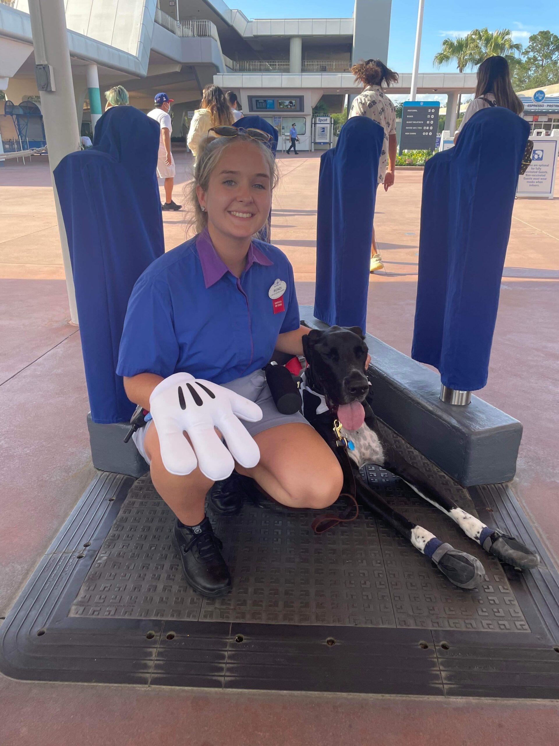 Rondi Pepper and her service dog, Winnie, working at Epcot. Image credit: Rondi Pepper